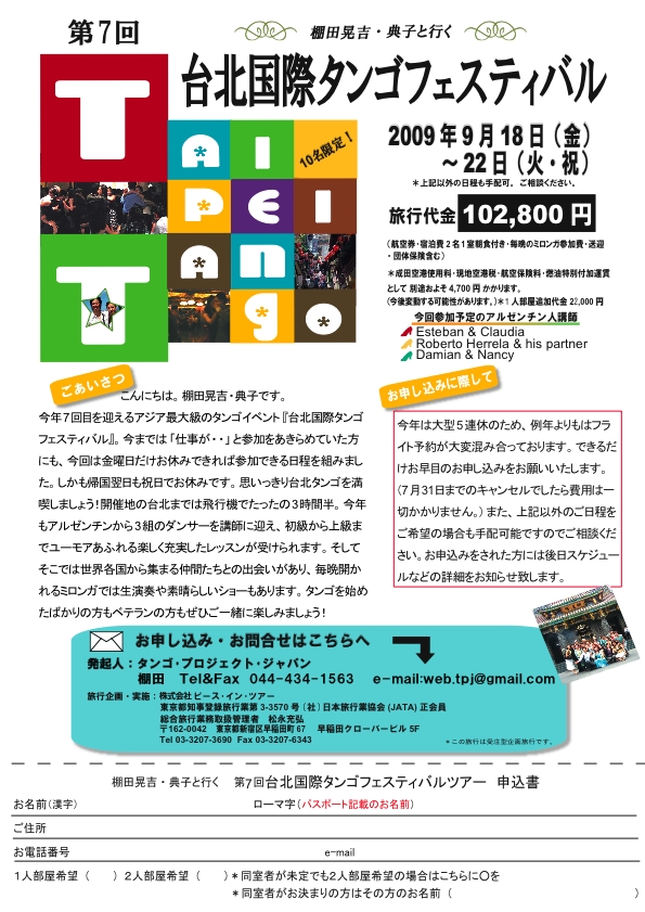 第7回目を迎える台北国際タンゴフェスティバルにご一緒しませんか?