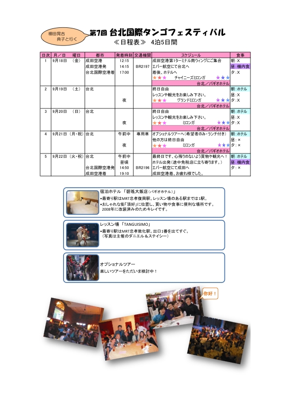 台北はアジアが世界に誇る最高のサロンタンゴ大国。リピータも多い、タンゴツアーです。